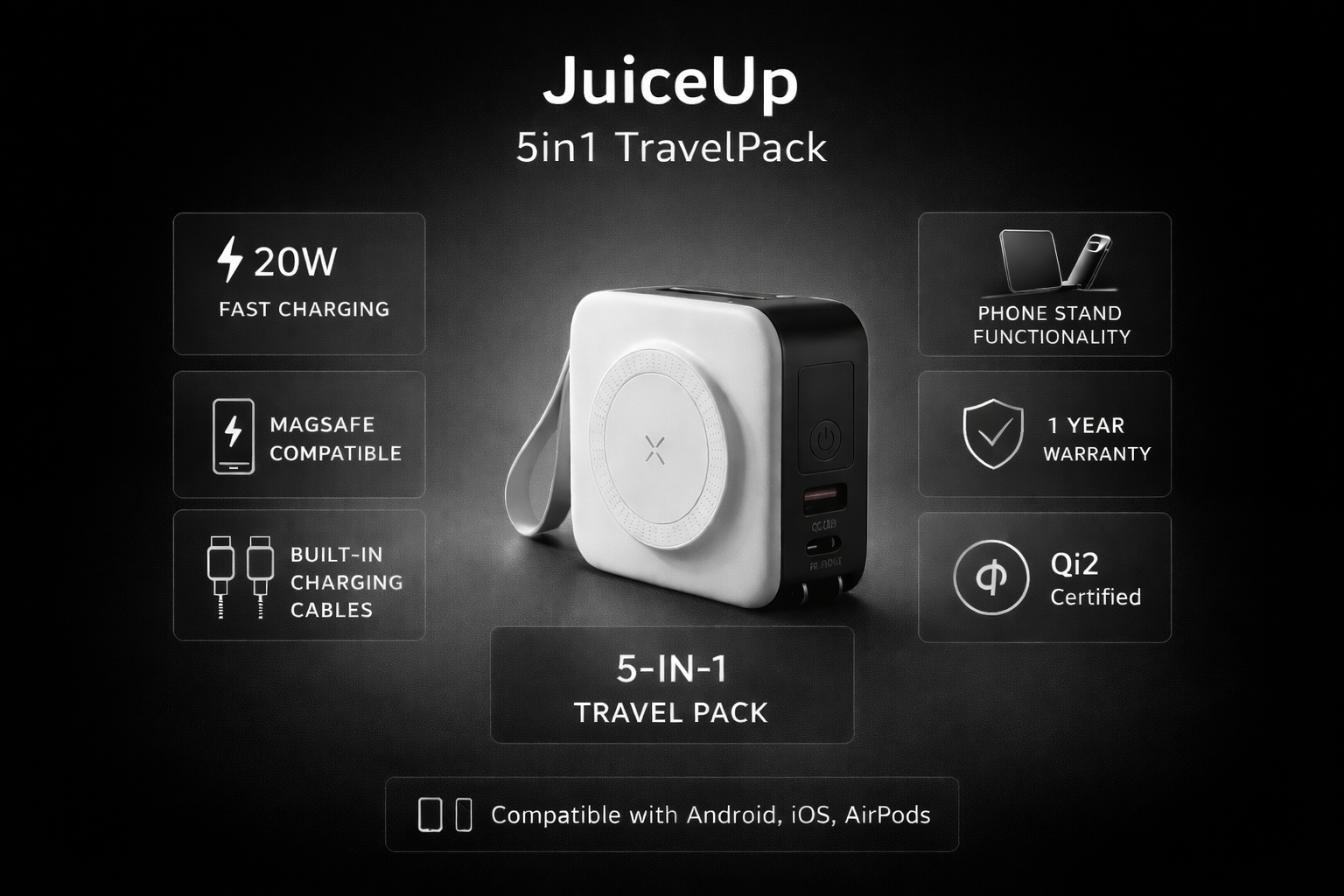 JuiceUp 5in1 Power Pack | MagSafe Compatible | All Phone types
